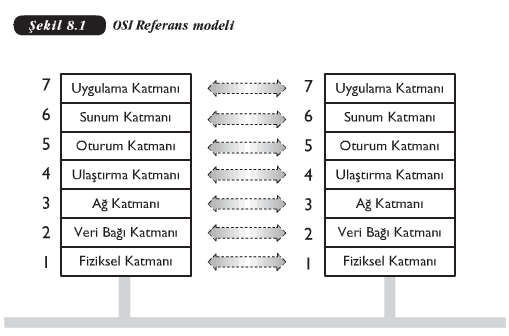 Aşağıdaki şekilde OSI referans modeli katmanları gösterilmektedir: