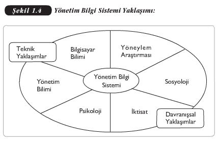Bilgi sistemleri üzerine incelemeler, bilgi sistemi çalışmalarının disiplinlerarası bir alan olduğunu göstermektedir. Şekil 1. 4, bilgi sistemi çalışmalarına katkısı olan ana disiplinleri ve yaklaşımları göstermektedir (Laudon ve Laudon, 2002, s. 14). Bilgi sistemi yaklaşımları, genel olarak teknik ve davranışsal yaklaşımlar olmak üzere ikiye ayrılmasına rağmen, her ikisinin dengeli karışımı olan sosyoteknik yaklaşım bilgi sistemlerinin içeriğine en uygun olanıdır.