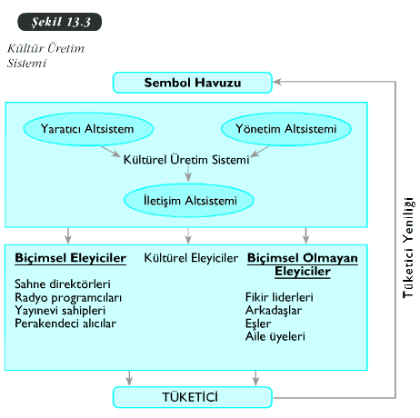Popüler kültürün yaratılmasında birçok kuruluş ve kişi görev üstlenmektedir. Kültürel bir ürünün yaratılması ve pazarlamasından sorumlu olan kuruluşlar ve kişilerden oluşan bütüne “kültürel üretim sistemi” denilir. Kültürel üretim sisteminin ya da kültür endüstrisinin farklı üyeleri birbirlerinin oynadıkları rolleri bilemeyebilirken, farklı kuruluşlar söz konusu kültürün yaratılmasında birlikte hareket ediyor olabilirler. Her üye, bir tüketici pazarına en çekici gelecek imajı belirlemek için olabildiğince çalışır. Hiç şüphesiz, tüketicilerin zevklerini en iyi belirleyenler zaman içinde başarılı olacaklardır.
