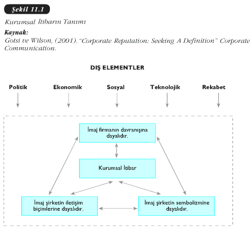 Sonuç olarak literatürdeki bu farklı tanımlamalar doğrultusunda Şekil 1′de de göreceğiniz gibi şöyle bir tanım yapılabilir: “Kurum itibarı bir hissedarın kuruma dair zaman içinde yaptığı değerlendirmedir. Bu değerlendirme hissedarın kurum içindeki doğrudan tecrübeleri, şirketin faaliyetleri ve/veya önde gelen rakip şirketlerin faaliyetleriyle karşılaştırılması hakkında bilgi sağlayan diğer tüm iletişim biçimleri ve sembolizme dayanmaktadır’ (Gotsi ve Wilson, 2001, s. 28).