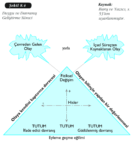 Davranışlar, bireyin bir nesneye (ürün, olay, marka vb) ilişkin olumlu ya da olumsuz değerlendirmelerinden etkilenir. Olumlu tutumun, olumlu davranışa yol açması beklenir. Vitamin hapı almaya yönelik olumlu değerlendirmesi olan bir bireyin günlük vitamin satın alması beklenir. Şekil 8. 4 duygu ve davranış ilişkisini açıklamakta ve duygularımızın tutum değiştirme aşamasına gelene değin izlediği akışı yansıtmaktadır.