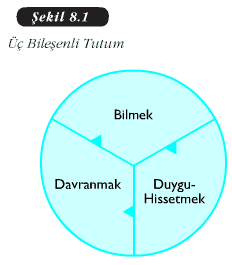 Şekil 8. 1, tutumlar ile ilgili bu üç bileşeni bir arada göstermektedir. Üç bileşen önce bağımız olarak, sonrasında birbirlerine yaptığı etkiler dikkate alınarak incelenecektir.