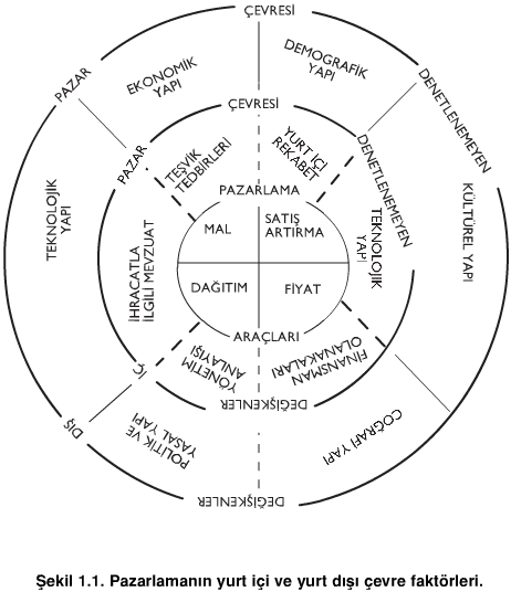 Pazarlama faaliyetlerini etkileyen çevre faktörlerinin açıklanmasında ekonomi, sosyoloji ve psikoloji gibi bazı disiplinlerden yararlanılır. Çevresel fiziki ve ekonomik faktörler pazarlamanın teknik yönlerinin, kültürel faktörler ise pazarlamanın sosyal yönlerinin ana unsurlarıdır. Ülke büyüklüğü, nüfus yoğunluğu, taşıma ve iletişim olanağı, gelir dağılımı ve fiyat düzeyleri gibi faktörler, pazarların, dağıtım kanallarının, fiyatların belli başlı etkenleridir. Fiziki ve ekonomik koşullar değiştikçe pazarlama faaliyetleri de ülkeden ülkeye değişiklik gösterir. Çevre faktörleri işletmeler için ya güçlükler ya da yeni fırsatlar yaratır.